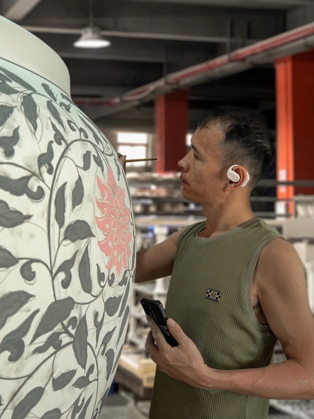 七星彩壇直徑1.1米、高1米,壇底盤直徑1.3米,這樣的尺寸無疑給燒制過程帶來了極高的挑戰(zhàn)。而在其表面,青花、五彩等七大傳統(tǒng)瓷藝畫面的創(chuàng)作難度同樣非凡。然而,我們的匠人們憑借不懈的努力與持續(xù)的突破,最終將其完美呈現(xiàn)。