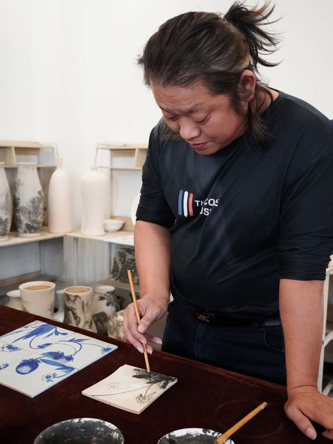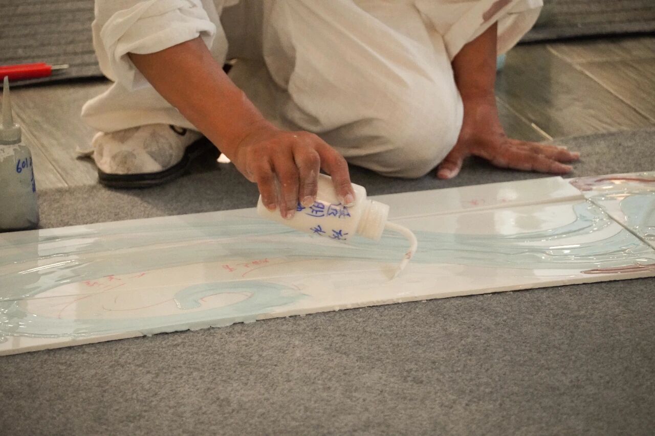 陶藝風(fēng)帆—巧妙地將瓷板切割并組裝成模擬海上揚帆遠(yuǎn)航的帆船形態(tài),其上的畫面細(xì)膩地還原了海浪。創(chuàng)作過程中,畫師首先精心勾勒出帆船的輪廓與海浪的動勢,隨后,一塊塊填上色彩,每一筆都蘊(yùn)含著極致的細(xì)膩與匠心。
