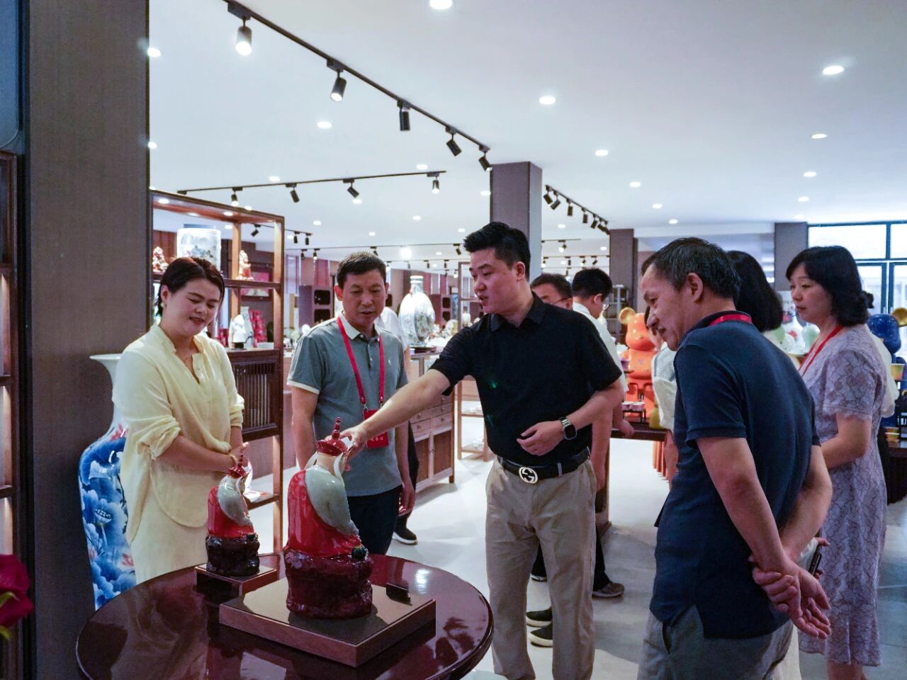 參觀期間,總經(jīng)理重點(diǎn)介紹了企業(yè)自主設(shè)計(jì)的"復(fù)刻無(wú)語(yǔ)佛"系列產(chǎn)品。作品精準(zhǔn)還原傳統(tǒng)佛像神韻,工藝精湛,市場(chǎng)反響熱烈。占劍副主任仔細(xì)觀摩后,高度贊賞企業(yè)將傳統(tǒng)技藝與現(xiàn)代設(shè)計(jì)相結(jié)合的創(chuàng)新實(shí)踐,充分肯定了企業(yè)在傳承和弘揚(yáng)陶瓷文化方面所做的努力。