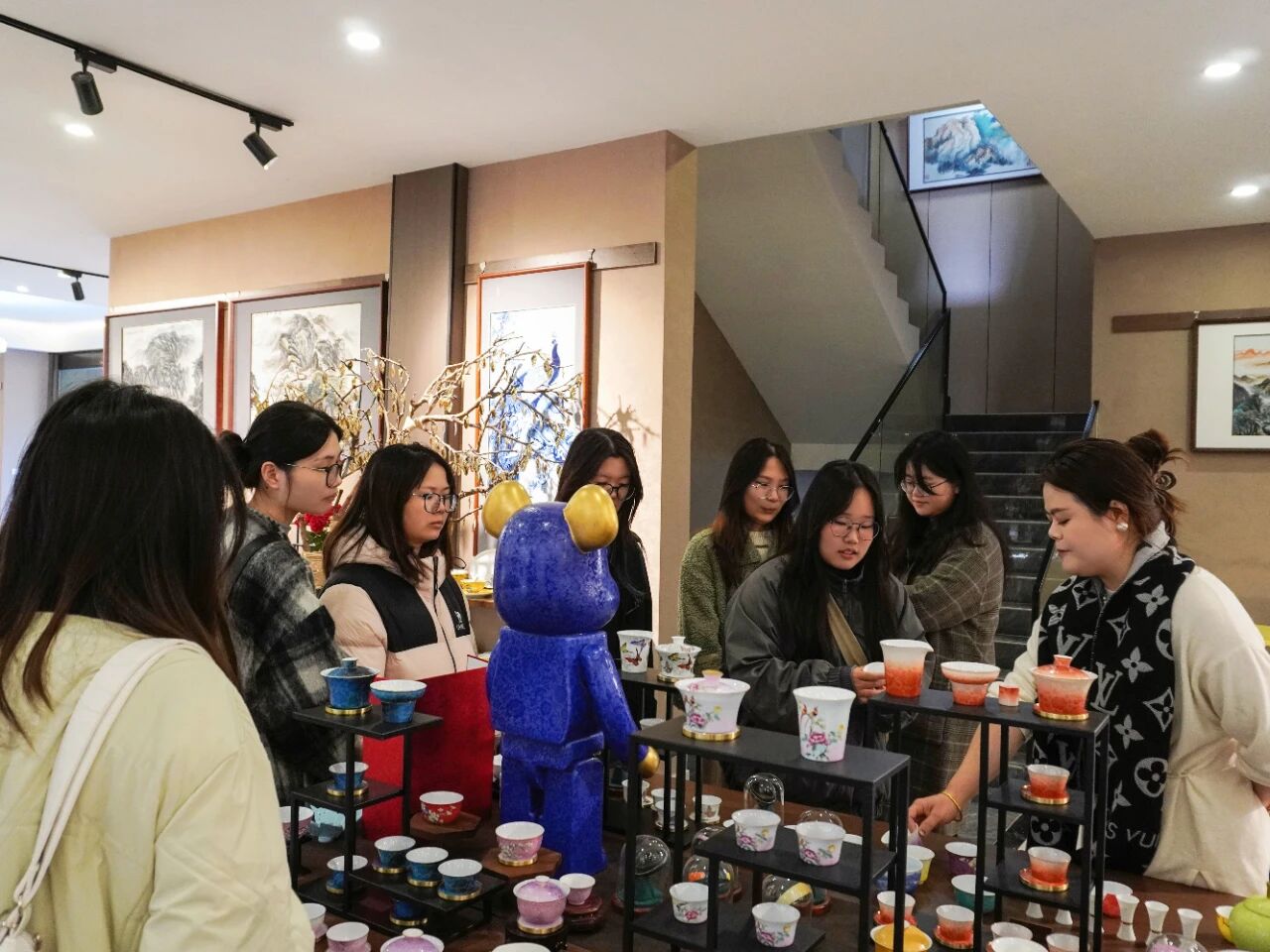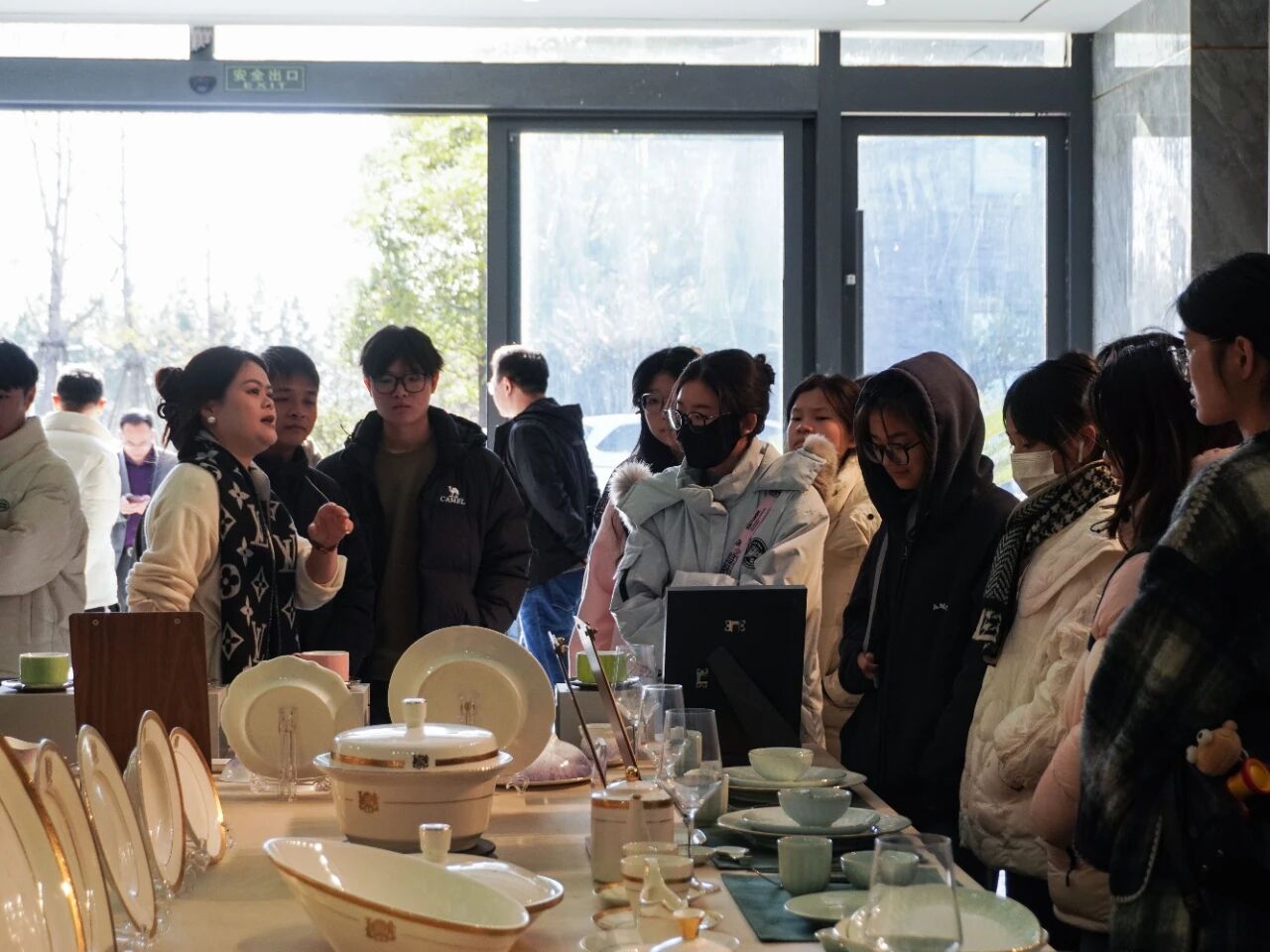 走進(jìn)生產(chǎn)區(qū),學(xué)生們目睹了陶瓷從原料成型到燒制出窯的全過程。在拉坯師傅的巧手下,器物線條愈發(fā)流暢;后又見證了操作員調(diào)色、施釉,在精細(xì)的操作中,坯體煥發(fā)出別樣光彩;以及于素胚之上巧運(yùn)靈思、妙筆生花的畫坯等工序后,企業(yè)技術(shù)人員還介紹了現(xiàn)代化生產(chǎn)設(shè)備如何與傳統(tǒng)工藝結(jié)合,提升生產(chǎn)效率與產(chǎn)品品質(zhì)。