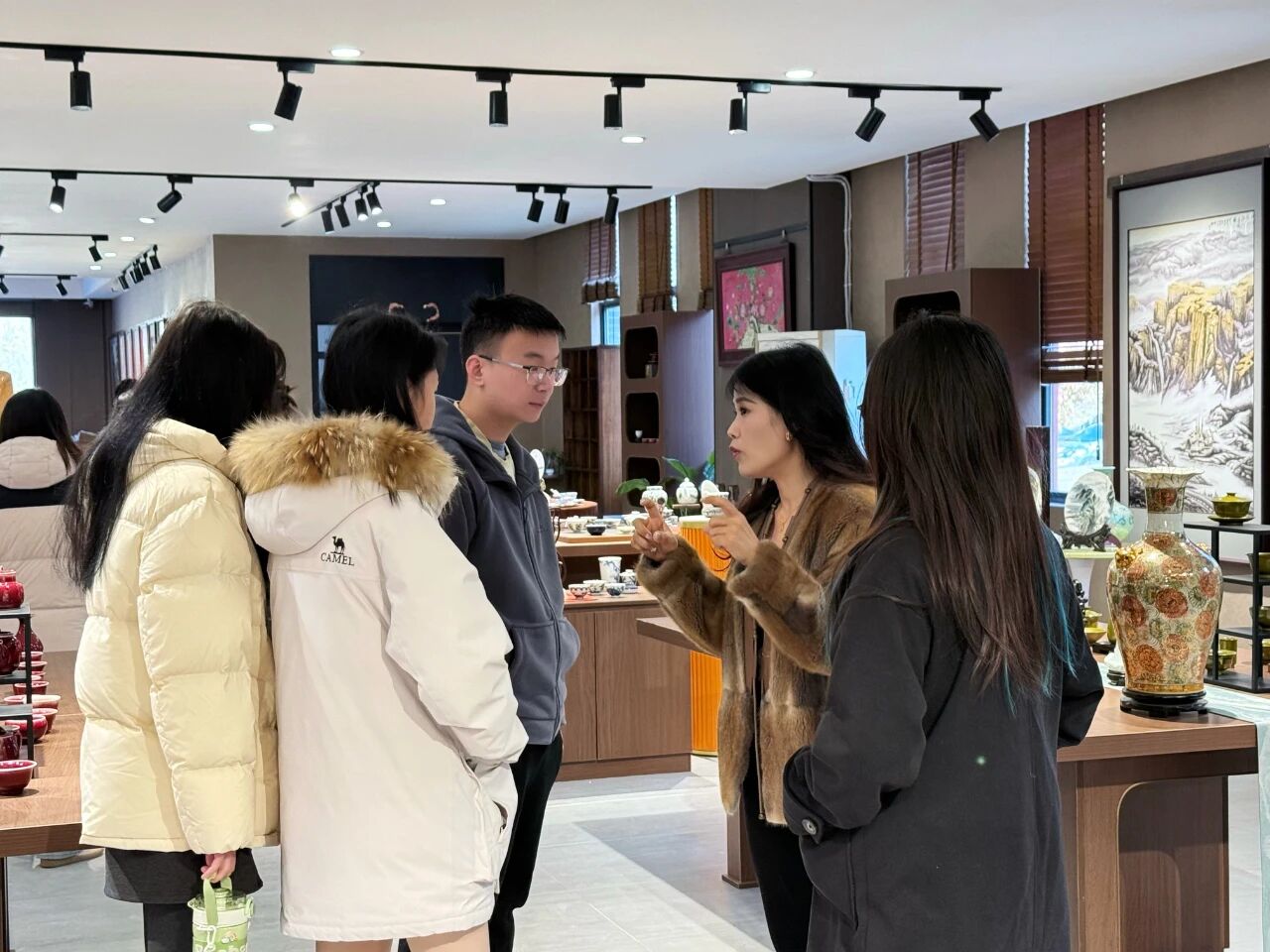 參觀過程中,學(xué)生們積極提問,與企業(yè)負(fù)責(zé)人、技術(shù)人員展開熱烈探討。針對陶瓷設(shè)計(jì)中的色彩搭配、材料選擇,以及如何平衡藝術(shù)性與實(shí)用性等問題,企業(yè)團(tuán)隊(duì)結(jié)合實(shí)際案例進(jìn)行了深入解答。這種“零距離”的互動,不僅拓寬了學(xué)生的專業(yè)視野,也為企業(yè)帶來了新鮮的創(chuàng)意視角。